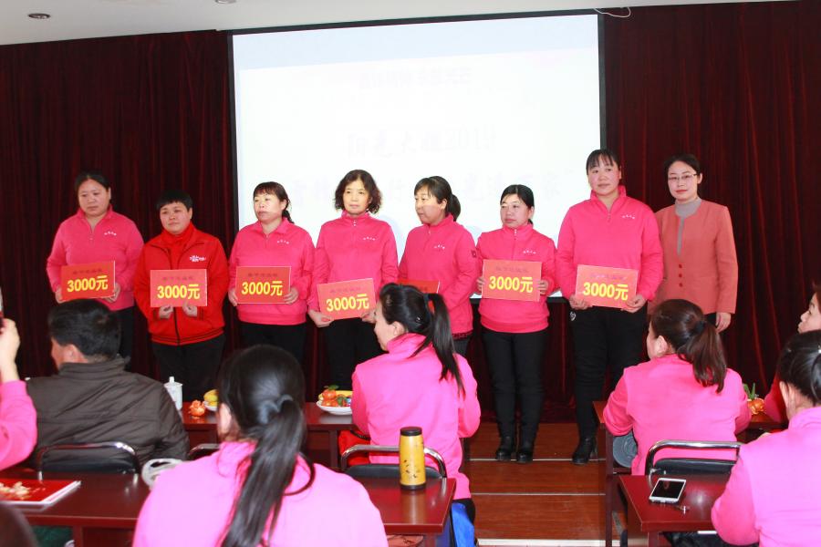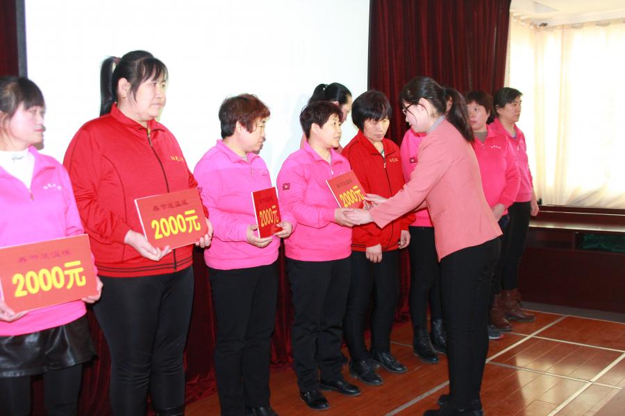 ??? 然后,公司領(lǐng)導(dǎo)對(duì)在過(guò)去一年,為公司發(fā)展做出突出成績(jī)的49名職工分別頒發(fā)了突出貢獻(xiàn)獎(jiǎng)、學(xué)習(xí)標(biāo)兵獎(jiǎng)、心連心標(biāo)兵獎(jiǎng),并為她們頒發(fā)了獎(jiǎng)狀,獎(jiǎng)品。