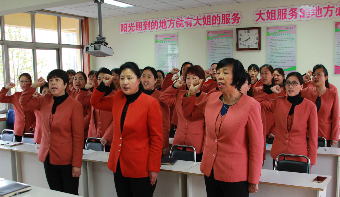 在本月的例會上,德州陽光大姐家政服務們舉起右手莊嚴宣誓,做出誠信服務承諾,簽署誠信服務公約。