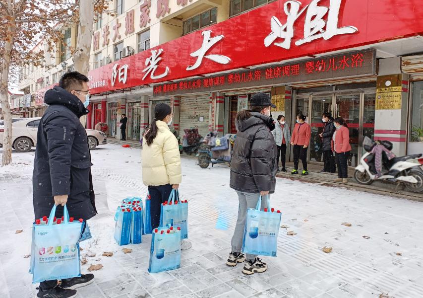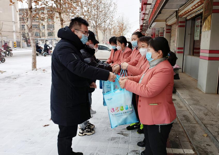 ? ? ? ?1月14日,農(nóng)歷小年,小雪如約而至,德城區(qū)婦聯(lián)舉行“巾幗送暖”活動(dòng),工作人員冒雪為我單位送來了防疫愛心大禮包,并感謝我單位在疫情防控期間的辛苦付出以及在促進(jìn)女性就業(yè)、推動(dòng)?jì)D女事業(yè)發(fā)展中作出的積極貢獻(xiàn),同時(shí)叮囑大家在歡度春節(jié)的同時(shí)也不要忘記做好自身防護(hù)。