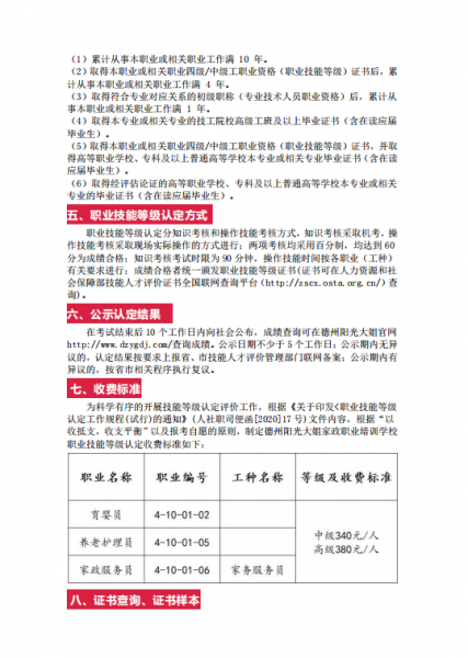 根據(jù)人力資源社會保障部《關(guān)于健全完善新時代技能人才職業(yè)技能等級制度的意見(試行)》(人社部發(fā)〔2022〕14 號)及山東省人力資源和社會保障廳《關(guān)于開展社會培訓(xùn)評價組織職業(yè)技能等級認(rèn)定試點工作的通知》(魯人社字〔2020〕50 號)、《關(guān)于進一步做好社會培訓(xùn)評價組織職業(yè)技能等級認(rèn)定試點工作的通知(魯人社字〔2022〕93 號)、《山東省社會培訓(xùn)評價組織職業(yè)技能等級認(rèn)定工作指引(試行)》等相關(guān)文件的要求,現(xiàn)將2024年度德州陽光大姐家政職業(yè)培訓(xùn)學(xué)校開展職業(yè)技能等級認(rèn)定工作的有關(guān)事項通知如下: