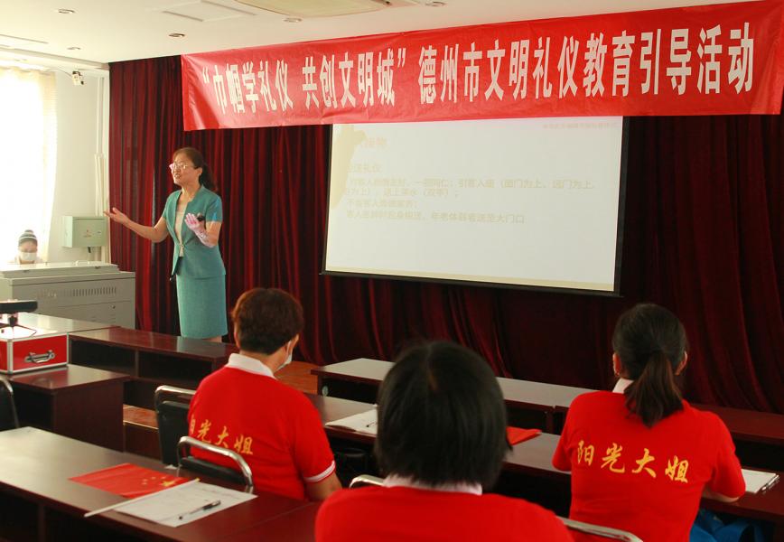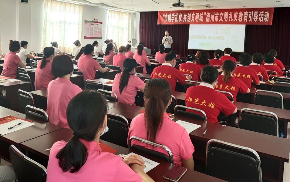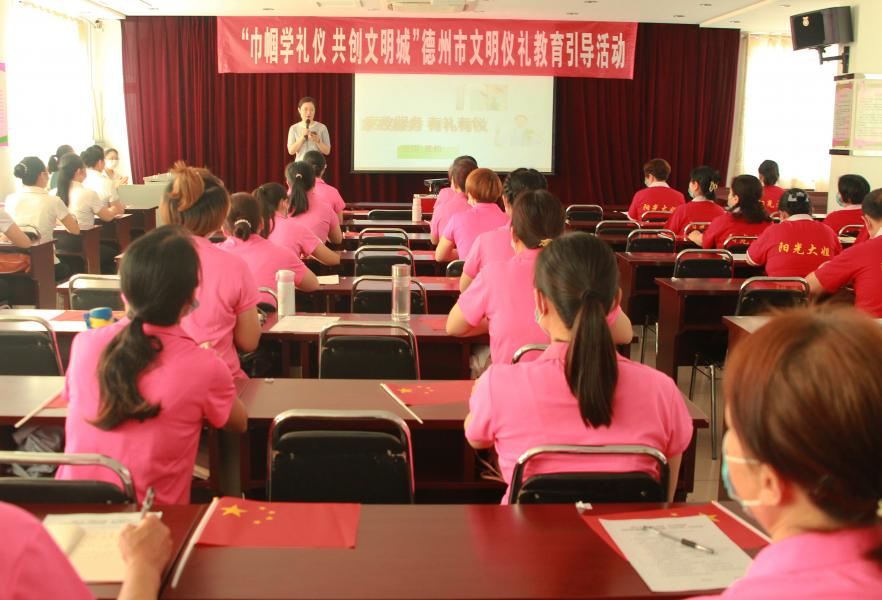? ? ? ?6月8日,由山東省婦聯(lián)主辦,德州市婦聯(lián)和山東廣播電視臺承辦的“巾幗心向黨,奮斗新征程”山東省婦聯(lián)新時代文明實踐“齊魯女性”宣講活動和德州市婦聯(lián)主辦的“巾幗學禮儀共創(chuàng)文明城”德州市文明禮儀教育引導活動走進德州陽光大姐家政職業(yè)培訓學校。我校校長劉俊杰出席,60余名家政從業(yè)人員參加活動。