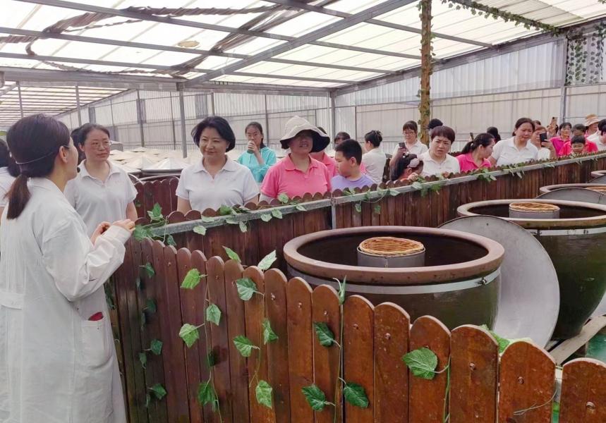 ? ? ? ?到達環(huán)球釀造廠后,職工們首先來到環(huán)球釀造廠園區(qū)內(nèi),在工作人員的講解下參觀了解了古法醬油、醋的制作工藝,零距離接觸翻曬醬油的古法醬園,感受兩千五百噸的日曬醋海,領略中華傳統(tǒng)美食文化釀造流程,探究醬醋文化的起源和工藝?;顒又校蠹疫€品嘗到了日曬五糧窖香醋、原汁日曬濁醬油、甜面醬,紛紛表示意猶未盡。