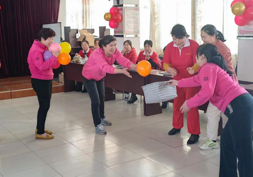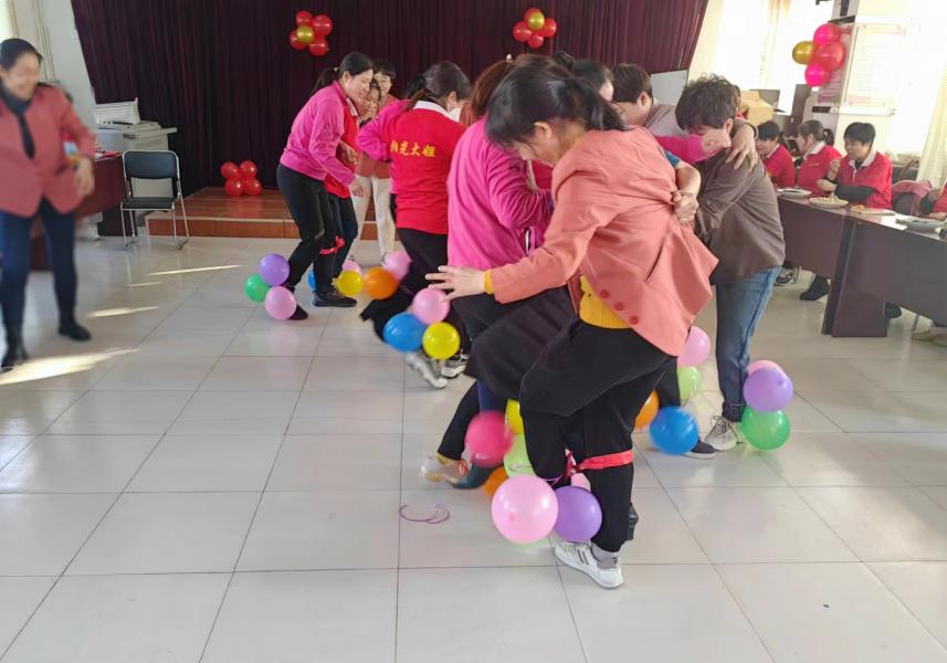 ? ? ? ?隨后進(jìn)行聯(lián)歡活動(dòng),大姐們載歌載舞慶祝自己的節(jié)日。趣味小游戲有“踩氣球”、“疊報(bào)紙”、“拋繡球”、“雙龍戲珠”等項(xiàng)目。在游戲中,參賽選手充分發(fā)揚(yáng)團(tuán)結(jié)協(xié)作、積極向上的精神,全身心投入到比賽中。整個(gè)聯(lián)歡過程緊張激烈又趣味橫生,現(xiàn)場熱鬧非凡,氣氛活躍。