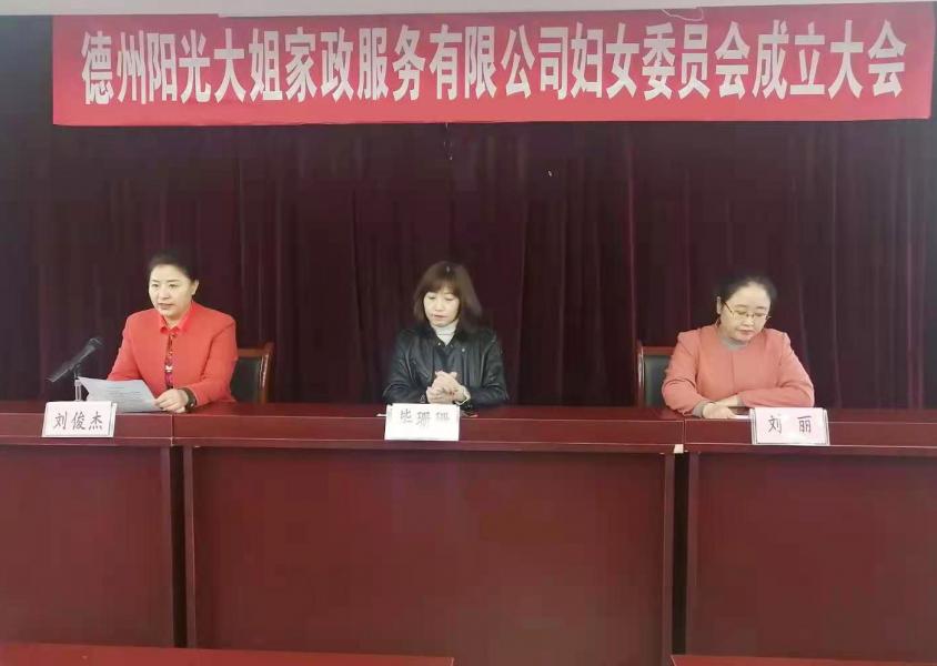 ? ? ? 為了維護婦女的合法權益,凝聚德州陽光大姐職工的力量,激發(fā)工作的熱情,促進公司的健康發(fā)展,根據(jù)相關條例,經(jīng)公司黨委會研究決定,并請示新湖街道辦事處婦聯(lián)同意,于2021年3月15日召開德州陽光大姐家政服務有限公司婦女委員會成立大會,德城區(qū)新湖街道辦事處婦聯(lián)主席畢珊珊,德州陽光大姐總經(jīng)理劉俊杰出席會議,28位女職工代表參加會議。