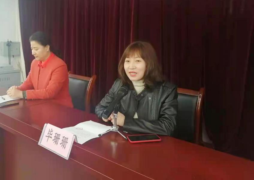 ? ? ? ?德城區(qū)新湖街道辦事處婦聯(lián)主席畢珊珊宣讀《關于同意成立德州陽光大姐家政服務有限公司婦女委員會的批復》。