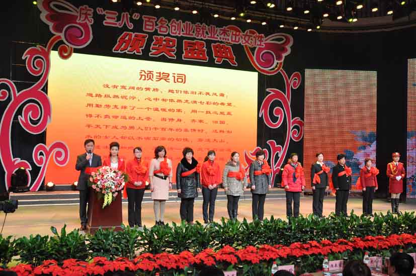 ? ? 2011年3月2日上午9點,我市舉行慶“三八”百名創(chuàng)業(yè)就業(yè)杰出女性頒獎典禮。中共德州市委書記吳翠云、市婦聯(lián)主席張化琴及各位領(lǐng)導(dǎo)出席了現(xiàn)場。