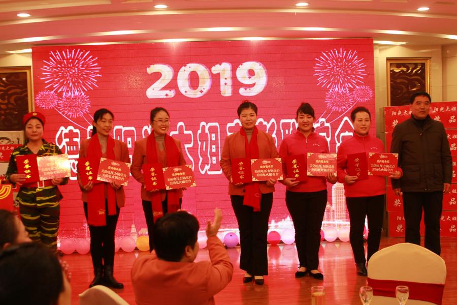 ?????? 歡歌辭舊歲,勁舞迎新春。元月四日下午,德州陽光大姐舉行2019年學(xué)雷鋒提升行動年總結(jié)表彰暨春節(jié)聯(lián)歡會。會議總結(jié)回顧去年以來公司貫徹落實(shí)國務(wù)院關(guān)于家政服務(wù)業(yè)提質(zhì)擴(kuò)容,開展學(xué)雷鋒提升行動年活動取得的成績,對在學(xué)雷鋒提升行動年活動中涌現(xiàn)出的愛崗敬業(yè)、無私奉獻(xiàn)、工作創(chuàng)新的34名職工進(jìn)行了表彰。晚會中豐富多彩的節(jié)目均由陽光大姐自編自演。大姐們熱情高漲,歡歌勁舞,共慶公司取得成就與進(jìn)步,共迎新春佳節(jié)的到來。本次活動公司有300余名職工參加,活動期間氛圍熱烈。