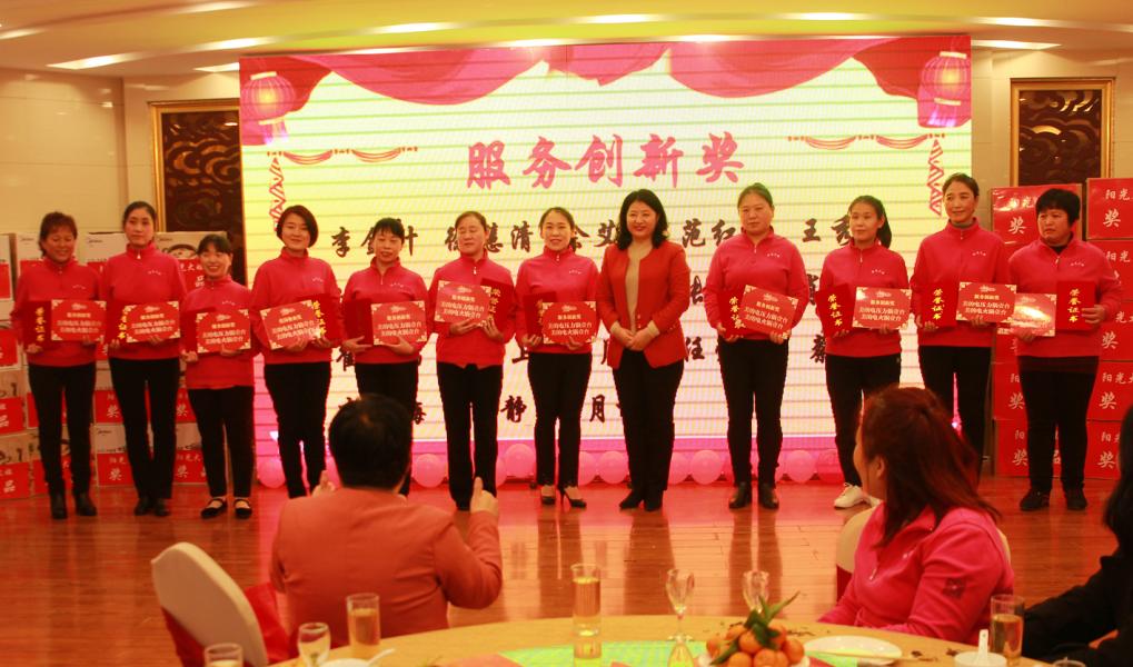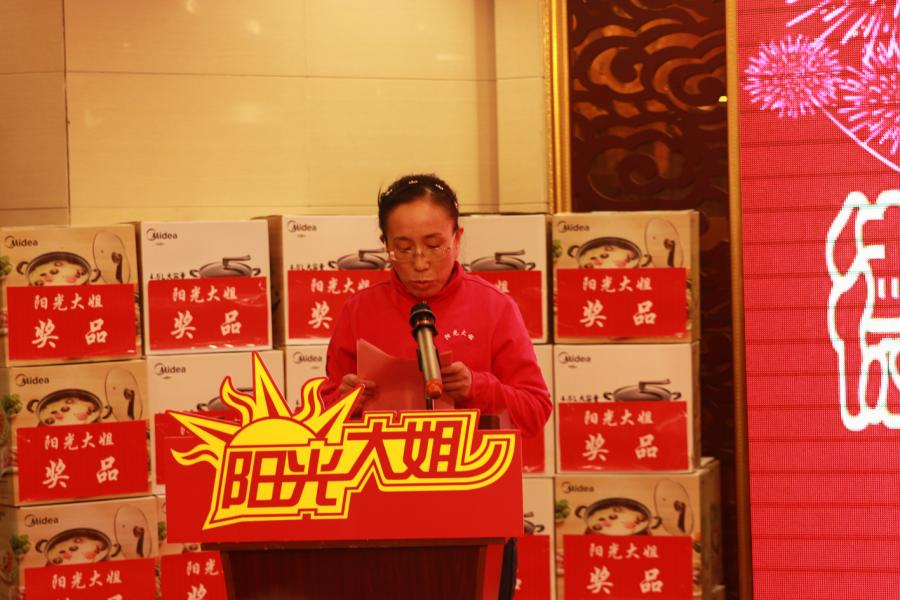 ??????會上,公司為獲得“無私奉獻(xiàn)獎”,“愛崗敬業(yè)獎”、“服務(wù)創(chuàng)新獎”的34名職工分別頒發(fā)了獎狀、獎品。王秀蓮、孫春燕、付立梅三位獲獎代表,在會上作典型發(fā)言。介紹了她們在各自崗位上,愛崗敬業(yè),無私奉獻(xiàn),創(chuàng)新服務(wù),視用戶為親人,任勞任怨,兢兢業(yè)業(yè),無怨無悔為用戶服務(wù)的感人事跡。她們的事跡深深感動了與會人員,表示要以她們?yōu)榘駱?,向她們學(xué)習(xí)。首席金牌月嫂余艾金在聽了劉總的講話和三位獲獎代表的發(fā)言后,備受感動并在現(xiàn)場分享了她的所感所想。余艾金講述了自己由一名普通的家庭主婦成長為一名備受社會和用戶尊敬的服務(wù)員。她說她的成長離不開劉總的辛勤付出,陽光大姐今天的輝煌也成就了千百個大姐的優(yōu)秀。余艾金代表大姐們向劉總獻(xiàn)花,對劉總表示誠摯的感謝。